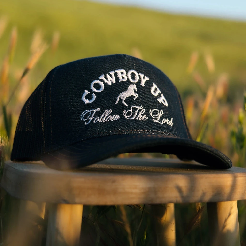 Cowboy Up Denim Trucker Hat