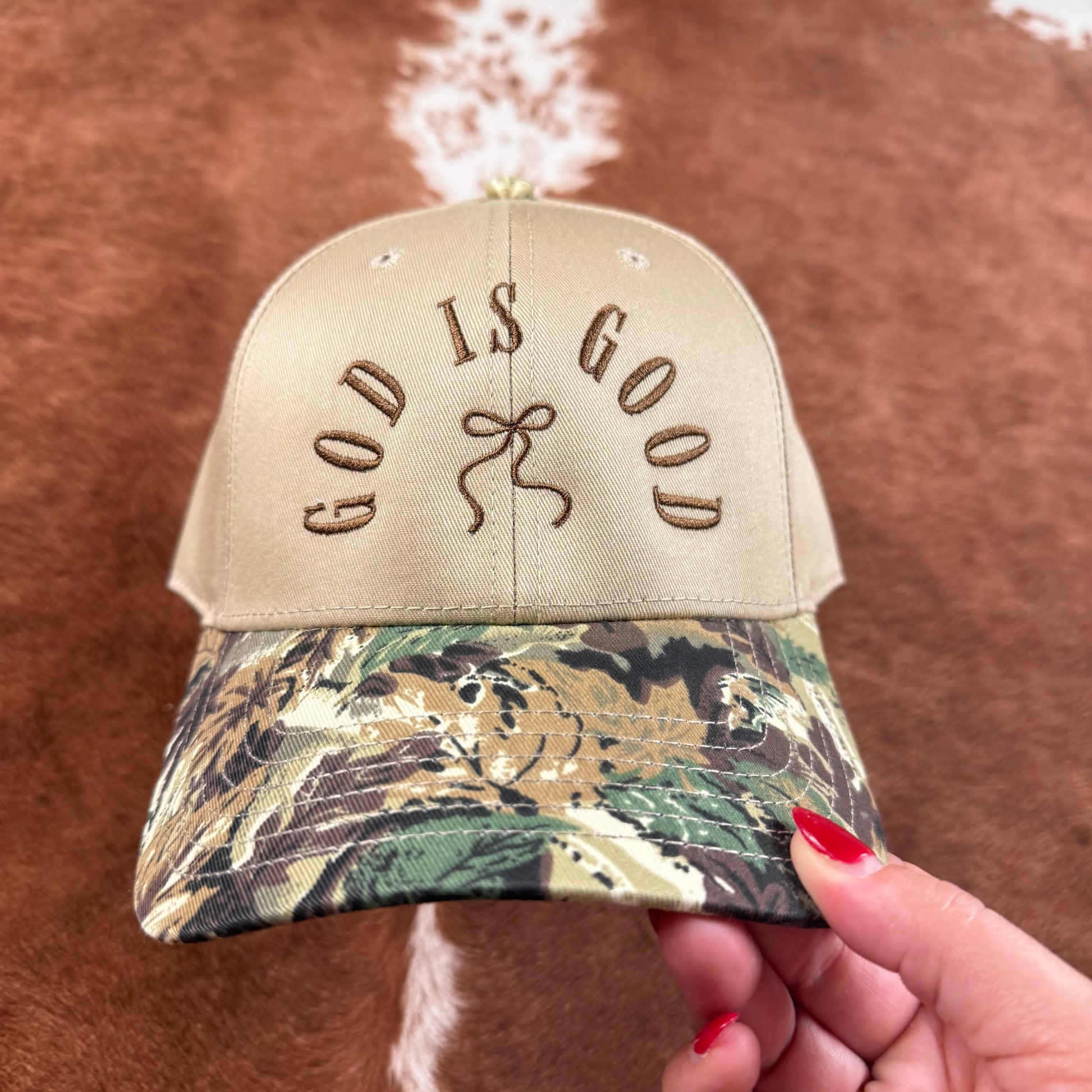 The God Is Good Camo Trucker Hat is the perfect mix of faith-forward and on-trend. Featuring neutral beige, camo print, and an adorable embroidered bow detail, this hat shares a powerful reminder: God is good all the time. Easy to style and effortlessly cute, it’s perfect for everyday wear, church events, or casual Christian girl outfits.