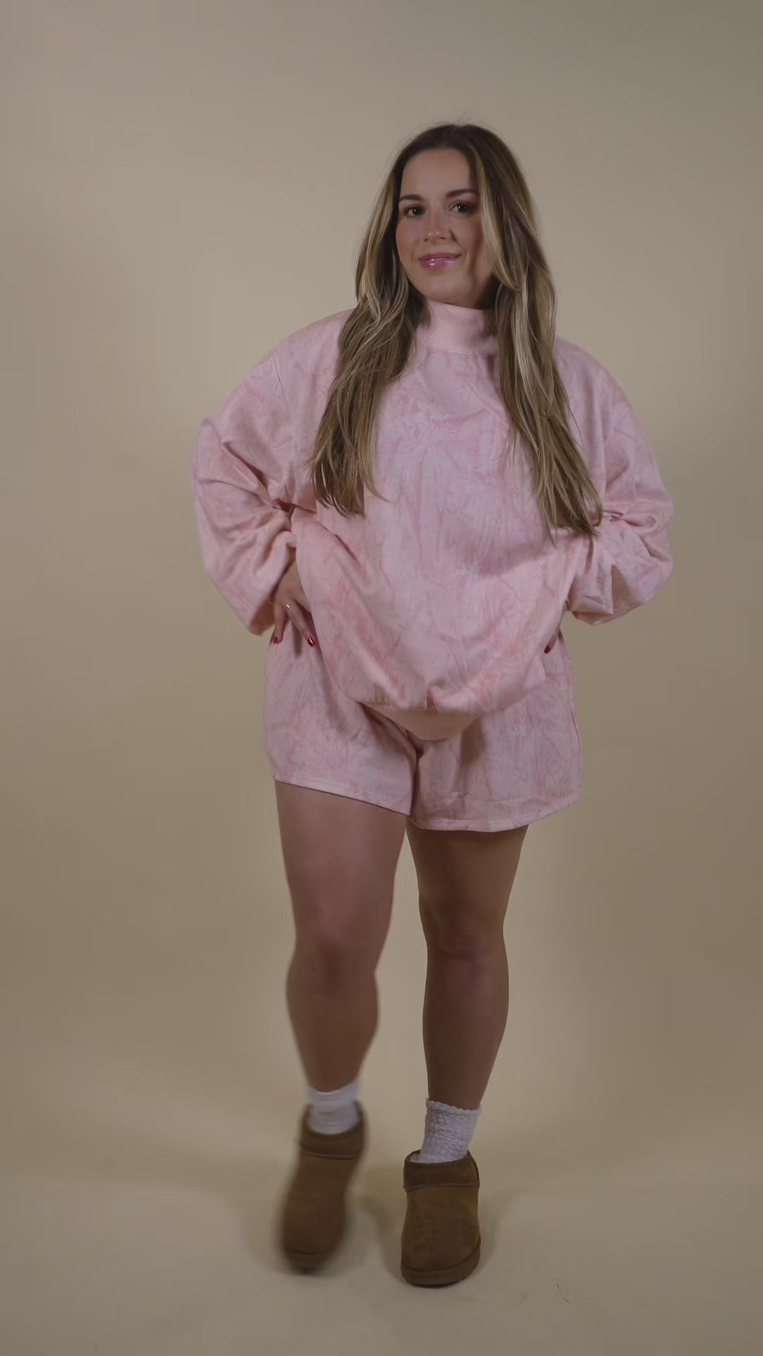 Meet your new go-to comfy set — the Pink Camo Lounge Short Set featuring our ultra-soft mock neck sweatshirt and matching sweatshorts. Designed with a relaxed, oversized fit, this girly camo set is perfect for lounging, traveling, or running some errands. Made with buttery-soft fabric, this set feels as good as it looks. Every pink girls dream.