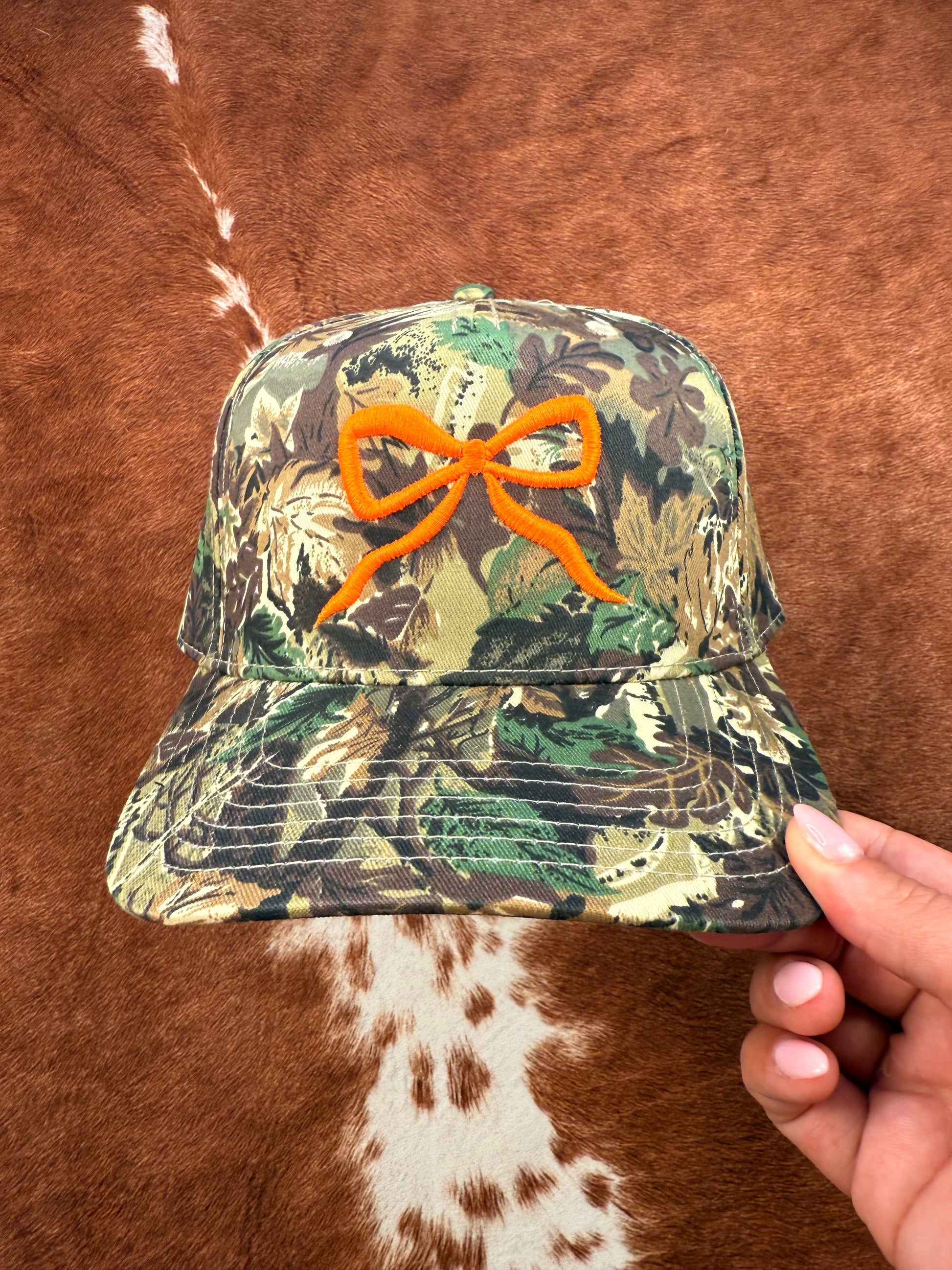 Calling all Coquette Cowgirls! Our Camo Bow trucker is perfect for any tomboy or girly girl. Available in Red, pink, cream and Orange.