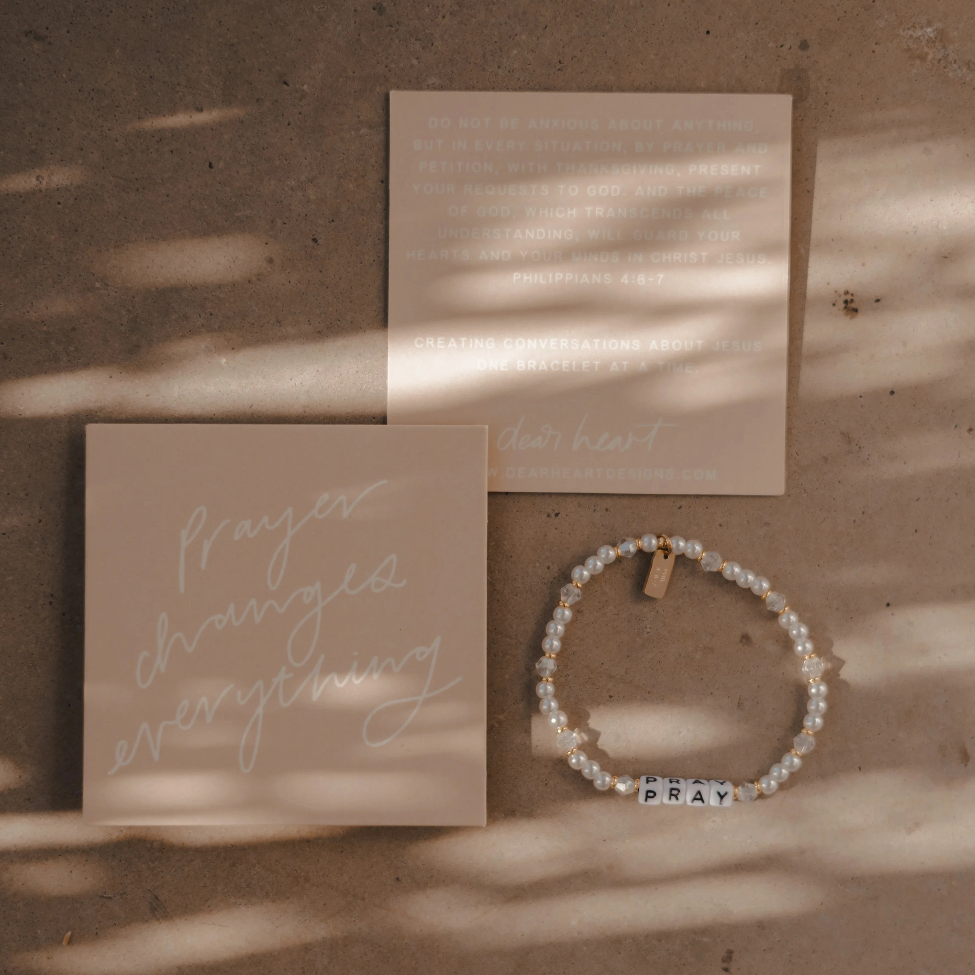 A simple and beautiful reminder of your Faith. Share with a friend and gift it or grab one for yourself. Beaded stretch bracelet with gold verse tag. Comes on display card with verse reference on the back.